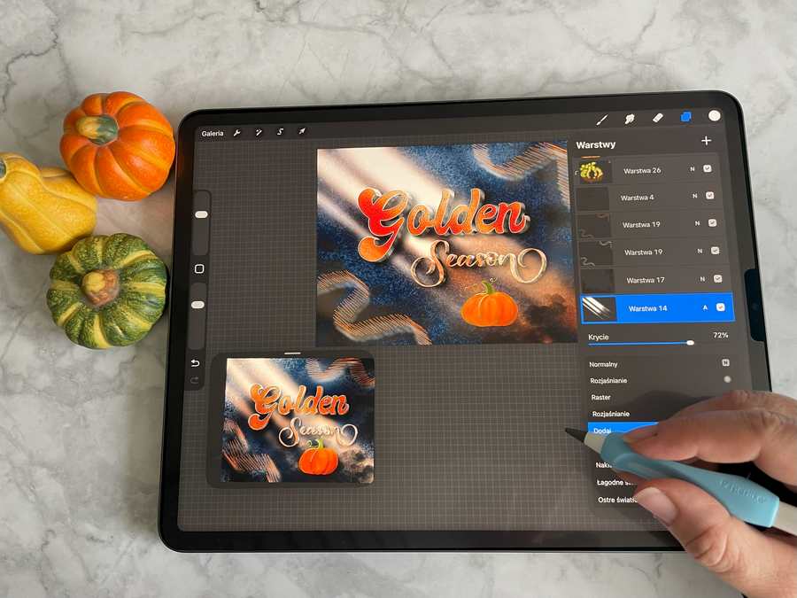 Stwórz ze mną złoty, jesienny projekt i naucz się nowych technik w Procreate, które odmienią Twój sposób rysowania.